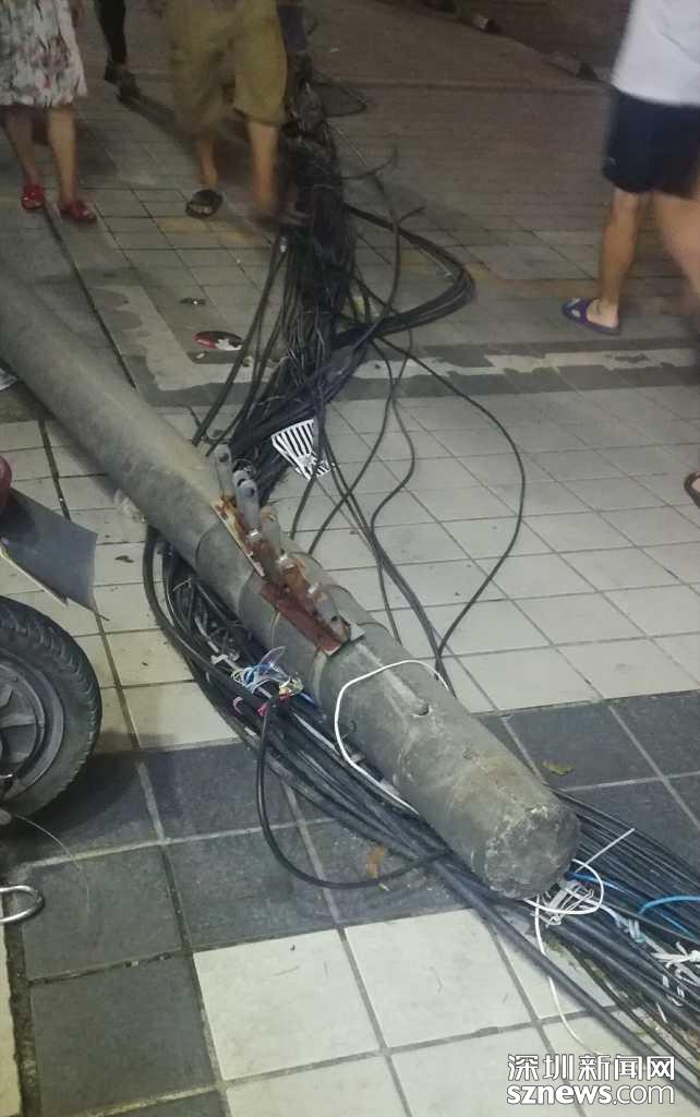 “山竹”刮倒寶安區(qū)石巖街道電線桿,漏電隱患誰來解決?