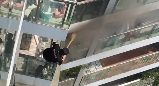 保利物業(yè)經(jīng)理楊俊明率領(lǐng)隊員合力救火