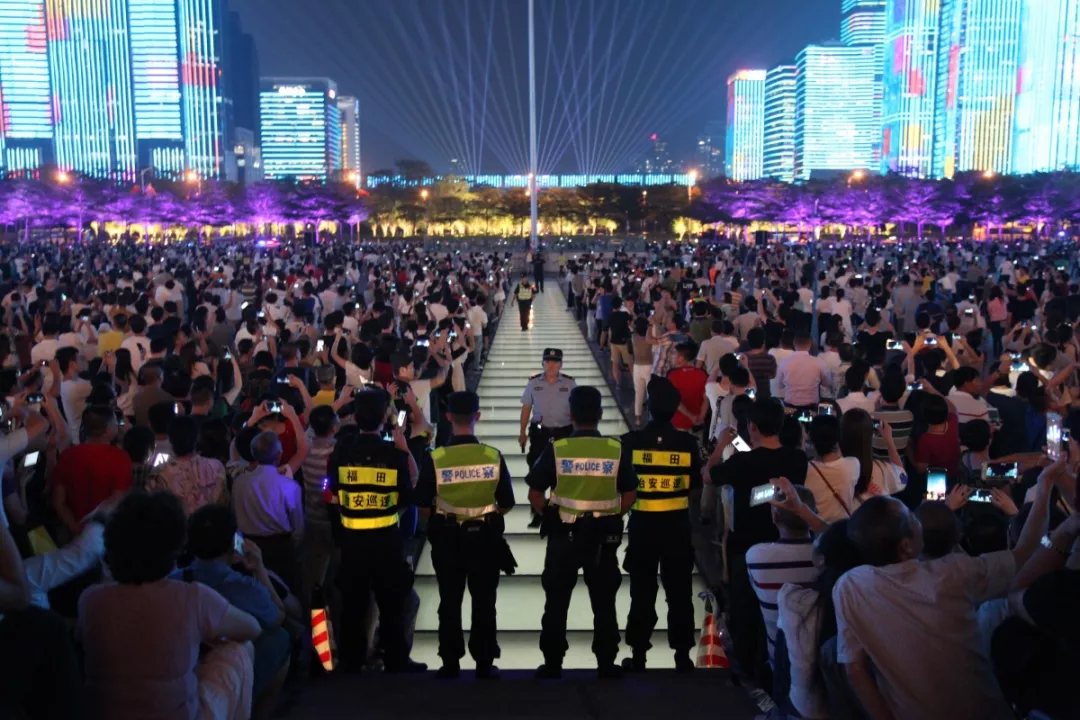 “燈光秀”活動(dòng)正式表演首日,現(xiàn)場(chǎng)觀演人數(shù)約54300人,福田公安分局出動(dòng)1000名警力在現(xiàn)場(chǎng)及周邊維持秩序,確保活動(dòng)順序舉行。