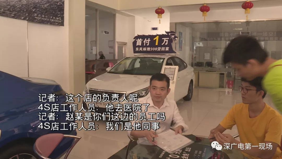 今天上午,記者也來(lái)到了東風(fēng)標(biāo)致卡瑞4S店,并沒(méi)有找到涉事的趙某?,F(xiàn)場(chǎng)工作人員表示,負(fù)責(zé)人有事沒(méi)在,而這個(gè)趙某,確實(shí)是銷(xiāo)售部的員工。