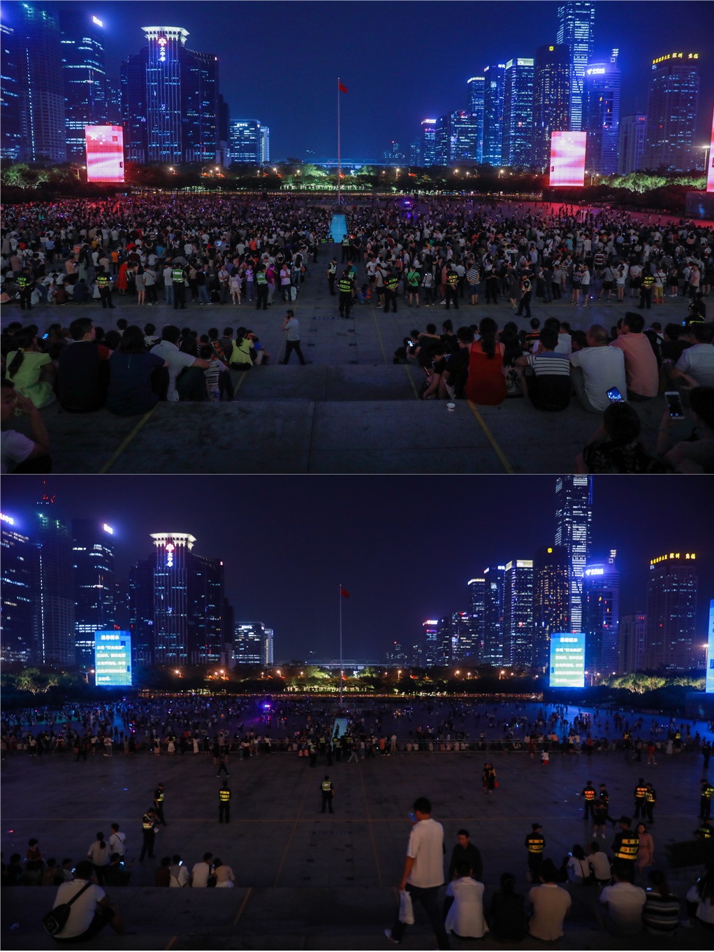 燈光秀期間,臺階和廣場連接的過道無垃圾遺留