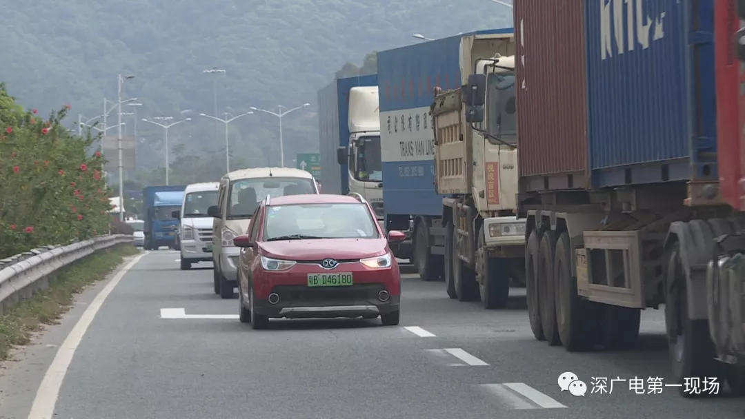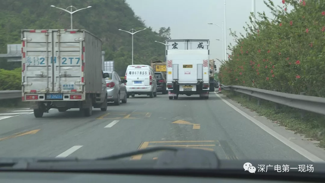 從梅觀路進梅林關(guān)往西方向,轉(zhuǎn)南坪快速路的輔道,是一條對貨車開放的路段。本來出口有兩條車道,而最近這兩車道變成了單車道,導(dǎo)致路況十分擁堵。