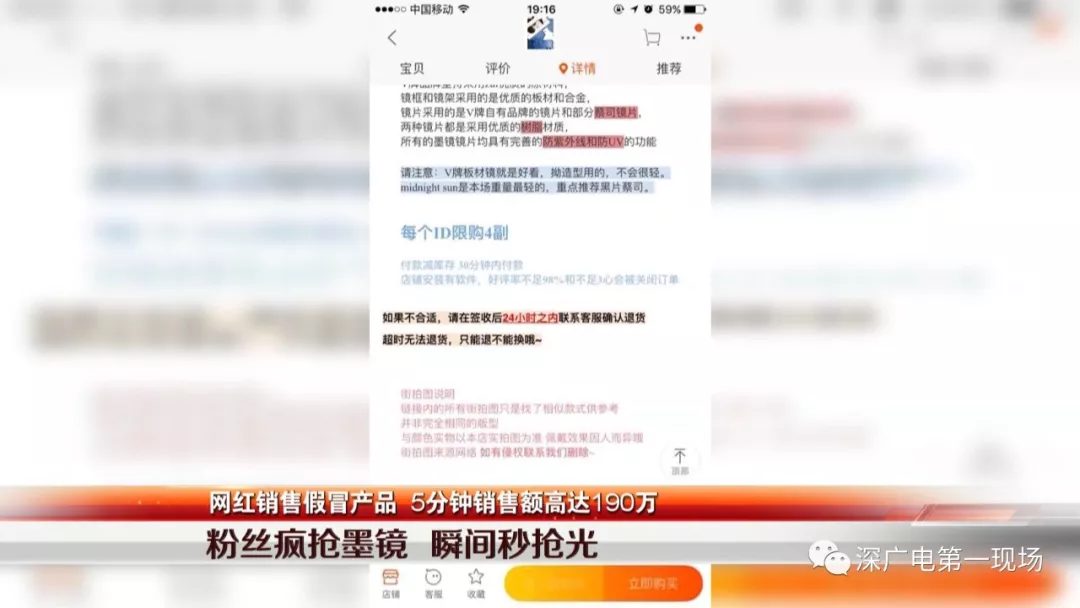 2018年年初,網(wǎng)紅“貓娘”開始在網(wǎng)上做秒搶某知名品牌的墨鏡的預(yù)熱廣告,聲稱原價(jià)1千多的正品只需要三分之一的價(jià)格就可以秒搶,吸引了大量粉絲關(guān)注。正式銷售當(dāng)天,短短5分鐘的時(shí)間,粉絲就瘋狂搶購(gòu)了三千多付墨鏡,銷售額達(dá)到190萬(wàn)元。
