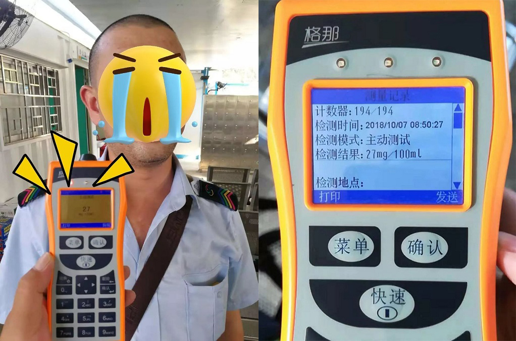 何某平告訴民警,自己是在前一天8點多吃晚飯時喝了二兩白酒,第二天早上覺得自己應(yīng)該“醒酒”了,就照常上班。沒想到隔夜酒還未退散。