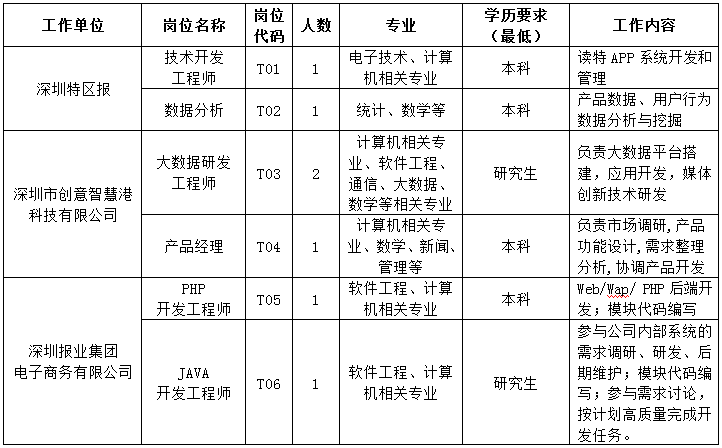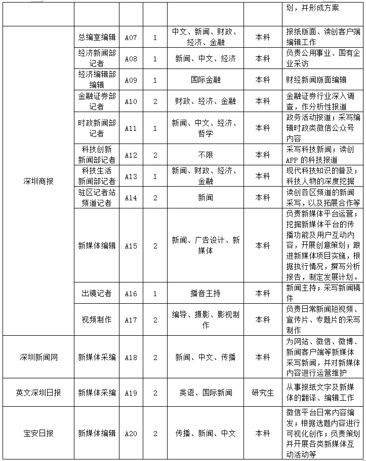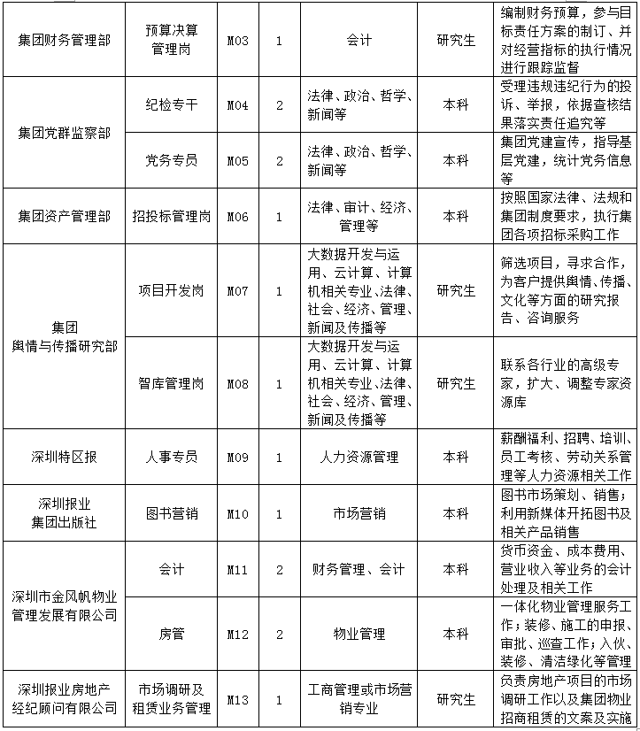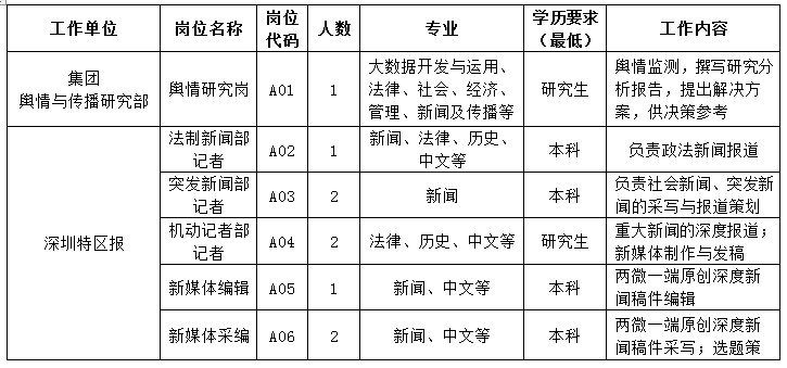 【深圳報業(yè)集團2019屆校招崗位需求】
