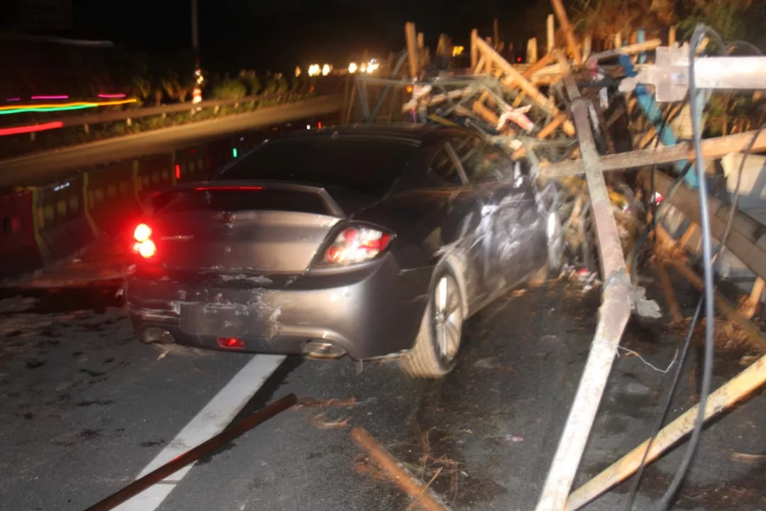 執(zhí)勤民警接報(bào)后立即前往龍崗區(qū)長(zhǎng)深高速3655KM往鹽田方向路段(高速路)處理事故,現(xiàn)場(chǎng)發(fā)現(xiàn)肇事粵B牌小車駛進(jìn)了高速公路右邊的施工區(qū)域撞上了鐵管,氣囊爆開,擋風(fēng)玻璃被鐵管直接刺穿,車輛損毀嚴(yán)重。