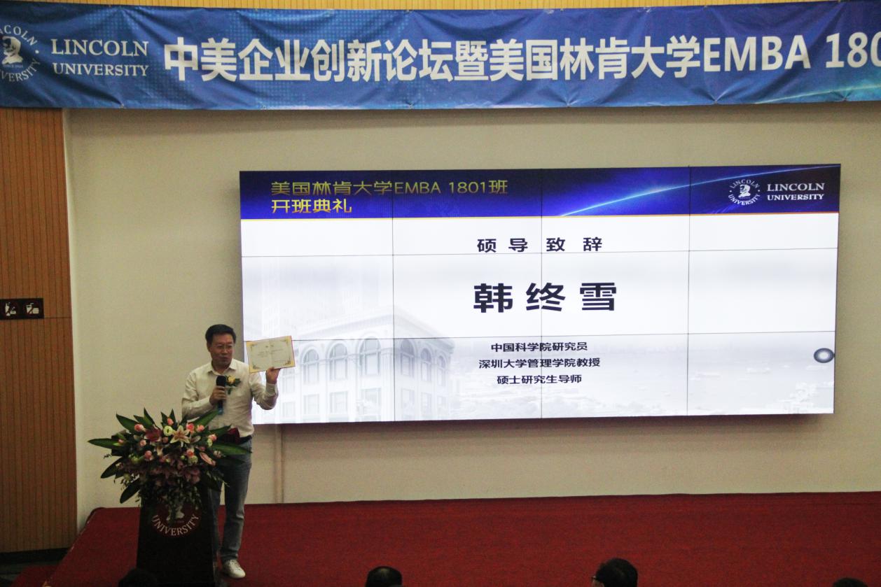 深圳新聞網(wǎng)訊 10月27日上午,由美國林肯大學(xué)EMBA深圳教學(xué)中心舉辦的《中美企業(yè)創(chuàng)新論壇》暨美國林肯大學(xué)EMBA1801班開班典禮,在深圳科技園香港科技大學(xué)報(bào)告廳舉行。論壇邀請(qǐng)了美國林肯大學(xué)校方代表?xiàng)畛缢嚥┦?、方勝祥先生、美國加州州立大學(xué)計(jì)算機(jī)系正教授 陶翼青 、中科院研究員韓終雪教授出席。美國林肯大學(xué)EMBA1801班的同學(xué)們、來自深圳教育行業(yè)、中國企業(yè)家代表 以及 媒體記者等160多位嘉賓 參加活動(dòng) 。
