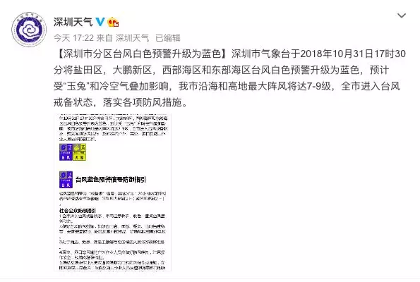 【深圳市分區(qū)臺風白色預警升級為藍色】
