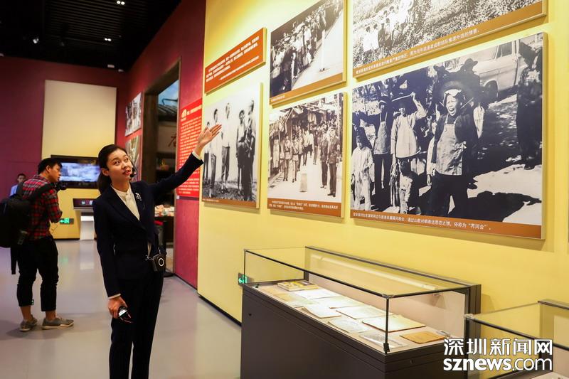 講解員正在對館內(nèi)展品進行講解(深圳新聞網(wǎng)記者 潘潤華、胡津瑋 實習生 張林羽 攝影報道)