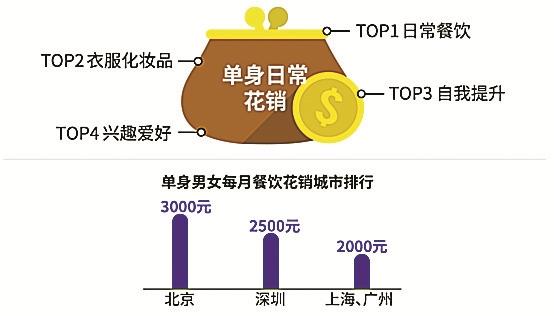 抖音上“成都小甜甜:帶我吃飯就好”,打動(dòng)無(wú)數(shù)單身男女心。然而數(shù)據(jù)顯示,單身人群每月(除房租房貸外)的生活花費(fèi)占比最多的就是日常餐飲,占比達(dá)40.67%。從地域來(lái)看,北京單身每月均餐飲花銷為3000左右,深圳為2500元,而上海、廣州則在2000元??梢?jiàn),“吃飯”已經(jīng)單身男女生活的最大開(kāi)支之一,想要實(shí)現(xiàn)“帶我吃飯就好”并非是一件容易的事情。而除餐飲花銷外,單身男女其他花銷分別為購(gòu)置衣服化妝品、自我提升費(fèi)用、興趣愛(ài)好。