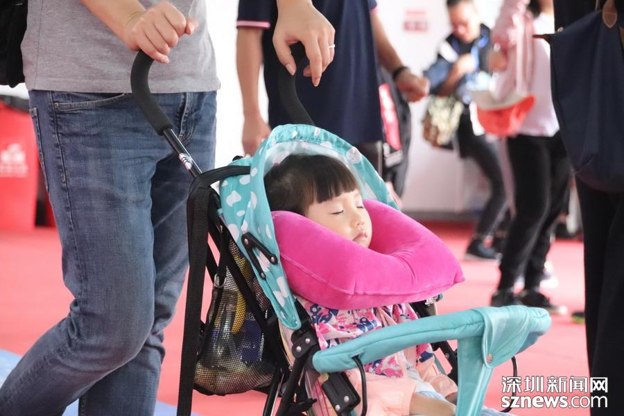 到了中午了,有小姑娘逛累了在推車上睡著