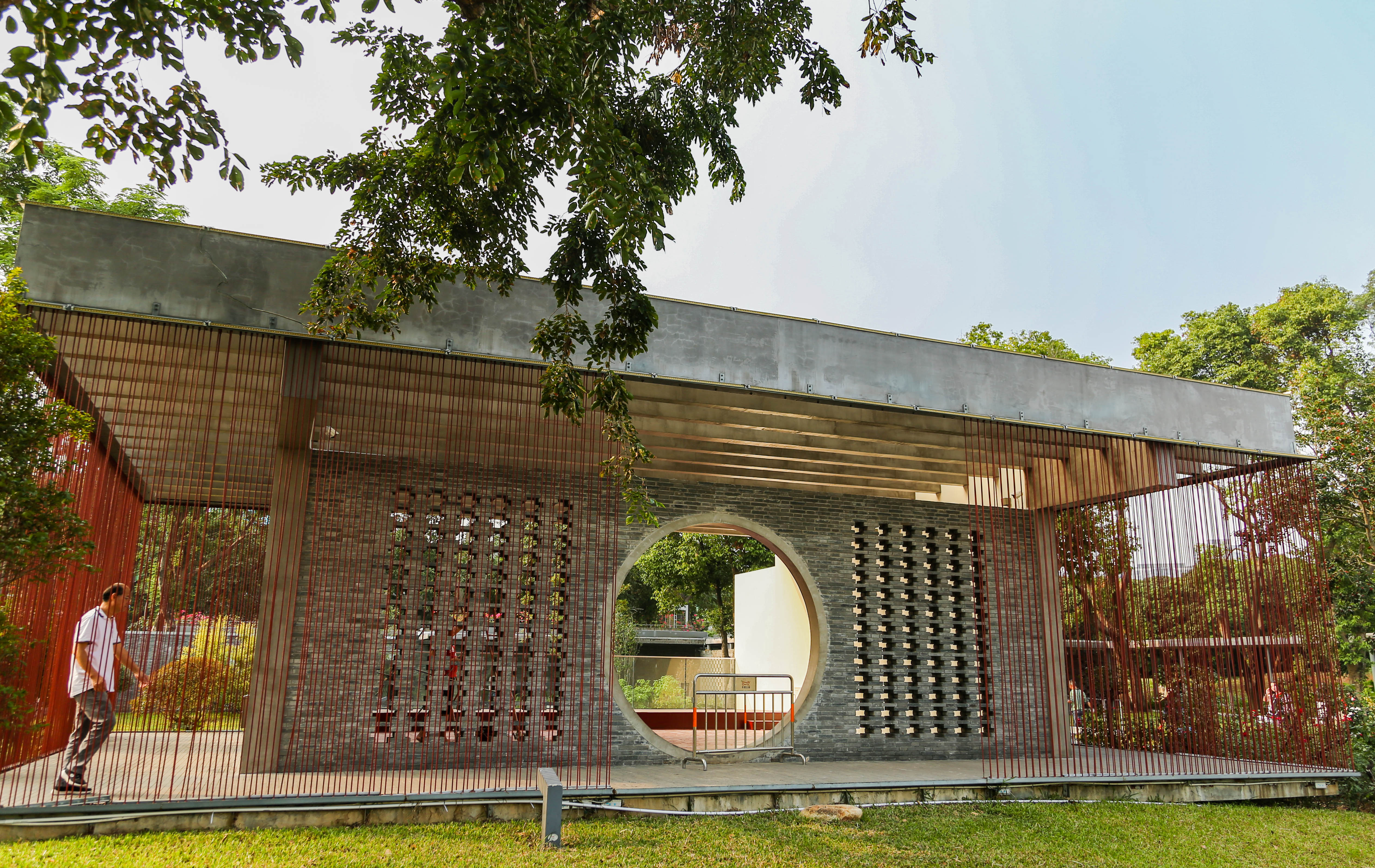 記者看到,目前西式婚禮堂和中式禮堂正在進(jìn)行最后的裝修和布置。西式禮堂潔白寧?kù)o,象征著純美的愛情。中式堂采用傳統(tǒng)的中軸對(duì)稱布局,軸線串聯(lián)內(nèi)院、建筑和湖面,外面拉了兩層紅色的鋼筋繩子,讓人聯(lián)想起“千里姻緣一線牽”。