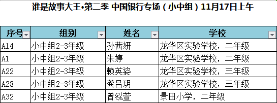 “誰是故事大王 ·第二季”深圳市復(fù)賽晉級名單