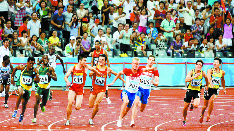 大運(yùn)會(huì)中,深圳健兒男子4X100米接力賽上創(chuàng)佳績(jī)。鄭東升 攝