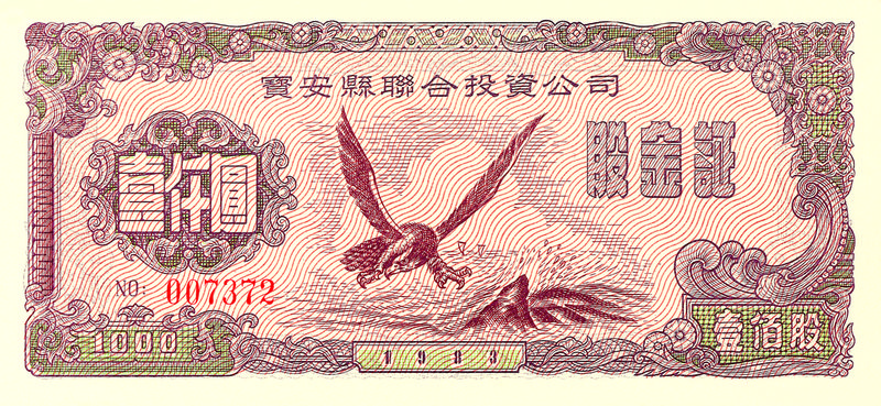 1983年,中國寶安集團發(fā)行的新中國第一張股票。
