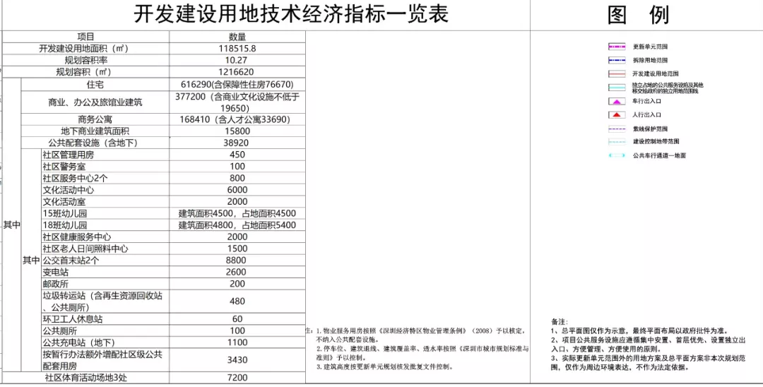 該項目更新單元用地面積189094.9㎡,拆除用地面積185639.0㎡,開發(fā)建設(shè)用地面積118515.8㎡(含劃入零星用地817㎡),規(guī)劃容積(含地下規(guī)定建筑面積)調(diào)整為1216620平方米,容積率達10.27。