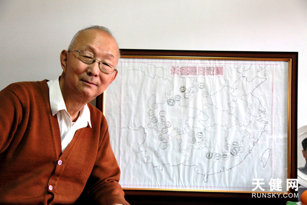 安邦才和老伴曾跨越10個(gè)省份重走長征路,留下了一份珍貴《長征路日戳圖》。
