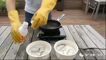 第三步,分別將正常帶魚(yú)和浸泡了福爾馬林的帶魚(yú)進(jìn)行油炸。