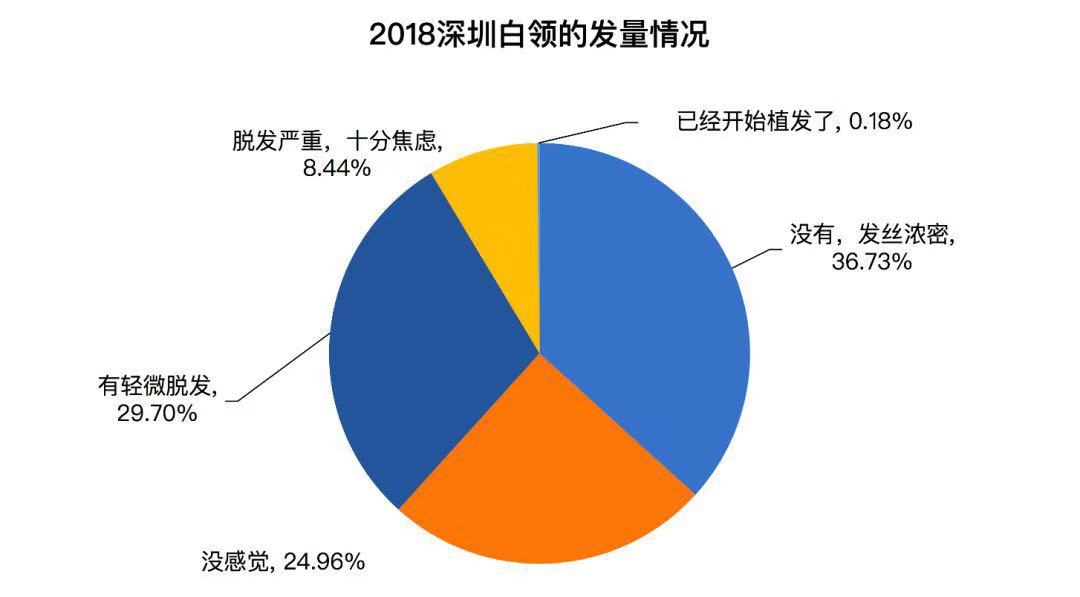 調研數據顯示,有36.73%的深圳白領"發(fā)絲濃密"沒有脫發(fā)的煩惱,在全國的發(fā)量豐富程度中排名第14,比較靠前,有近4成深圳白領對自己的發(fā)際線感到擔憂。