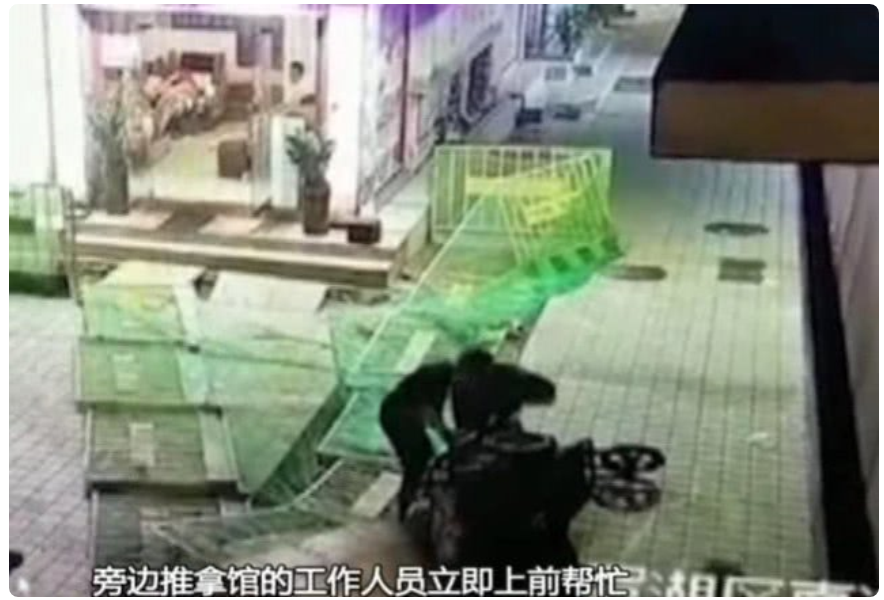 廣東DV現(xiàn)場(chǎng)2018年12月25日訊 事發(fā)在12月21日早上六點(diǎn)半左右、深圳市羅湖區(qū)向西村內(nèi)。只見(jiàn)男子開(kāi)著三輪車在經(jīng)過(guò)圍蔽工地旁的護(hù)欄邊時(shí),突然連人帶車摔倒進(jìn)了圍蔽區(qū)域。他當(dāng)時(shí)撞到了擋板,撞到了擋板之后就倒了,撞到了頭部。發(fā)現(xiàn)男子摔倒后,旁邊推拿館的工作人員立即上前幫忙。