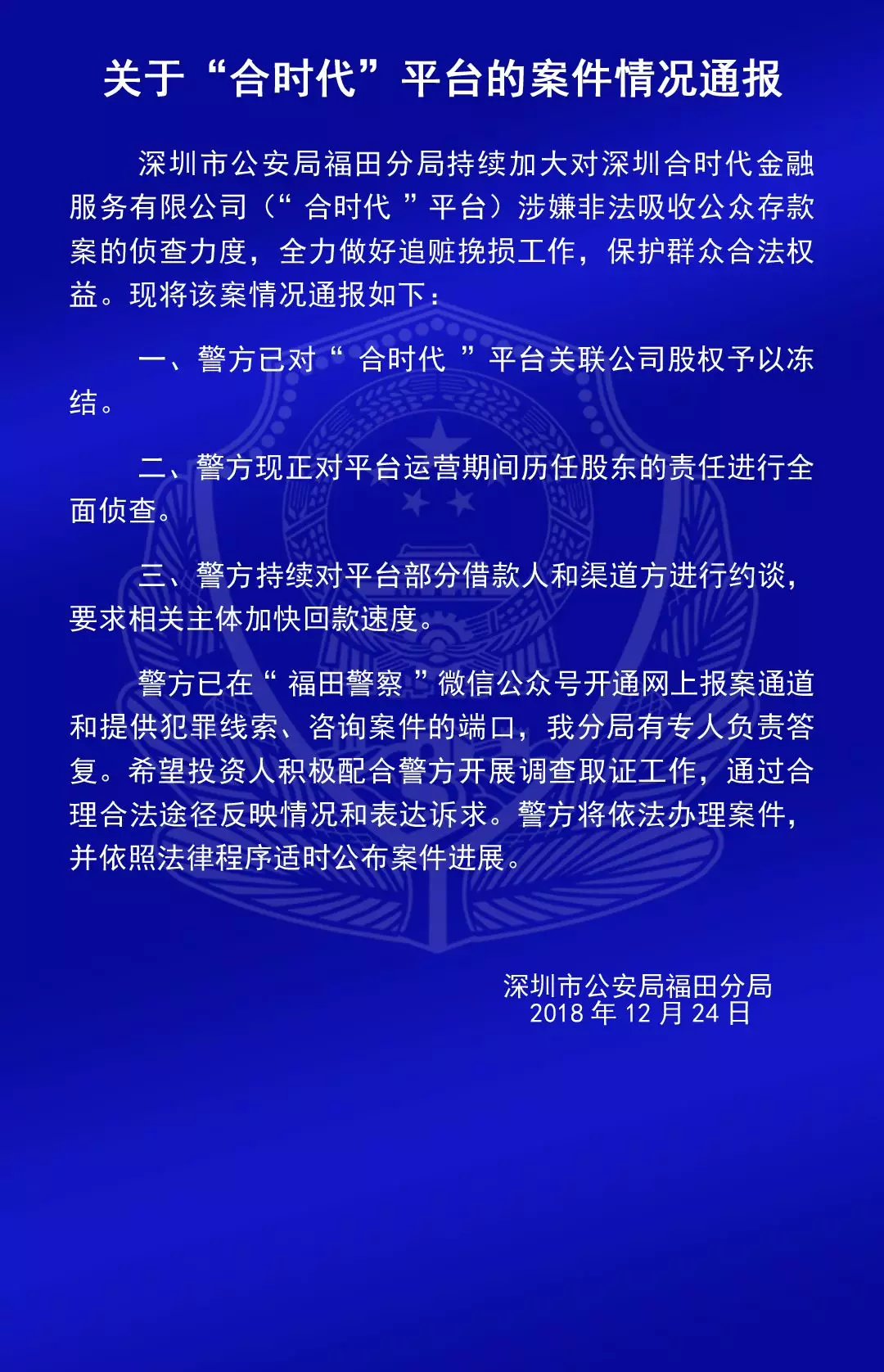 關(guān)于“合拍在線”“壹佰金融”“五星財富”“眾車在線”“財富中國”“小零錢”“錢爸爸”“合時代”和“前金融”平臺的案情通報