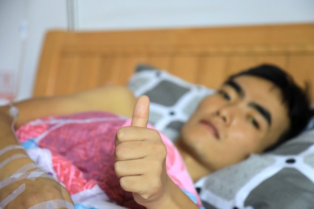 11月24日中午,他坐在輪椅上,讓他的父親向恒金推著他在陽(yáng)光下散步。"這里的空氣好新鮮。我喜歡這里。"他笑呵呵地對(duì)記者說。