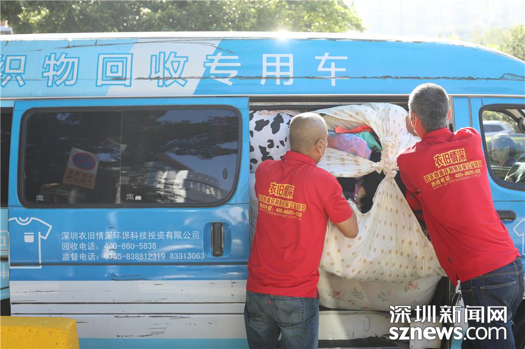 工作人員將衣物放至車(chē)內(nèi)