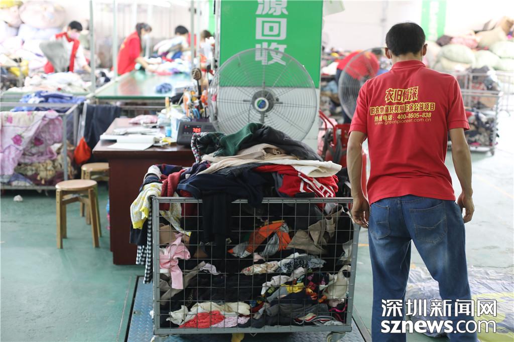 工作人員對分揀出來的衣物進行分類