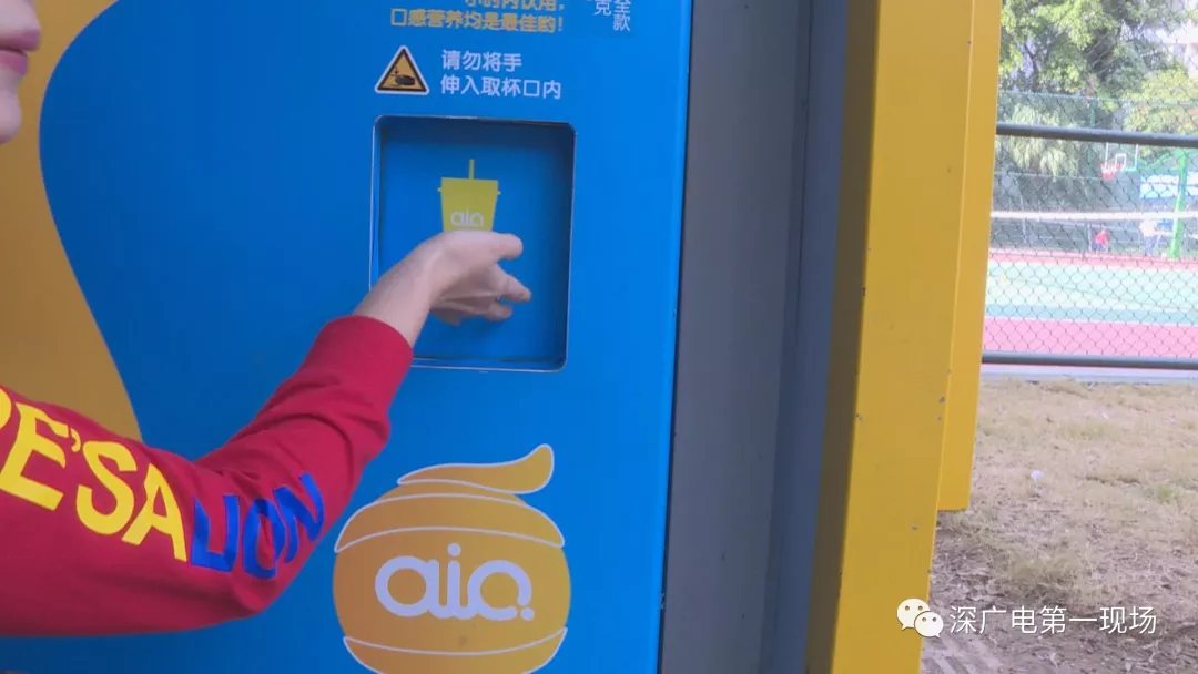 目前那臺事發(fā)的榨汁機(jī)是處于停用狀態(tài),不過機(jī)身上取物的出口處寫著“請勿將手伸入取杯口內(nèi)”的安全提示標(biāo)語。那么,小區(qū)里存在這樣的售賣機(jī)是否合適呢?