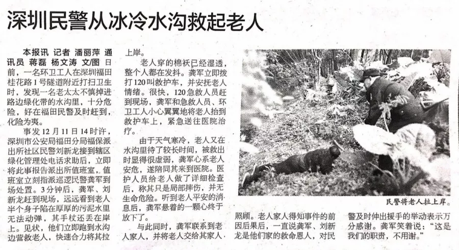 ★★老人不慎墜入水溝,福保派出所民警龔軍、劉新龍緊急出動(dòng)救援,行動(dòng)迅速,救援有力,老人轉(zhuǎn)危為安。這樣的事情經(jīng)常發(fā)生,民警視群眾如親人,老吾老以及人之老。