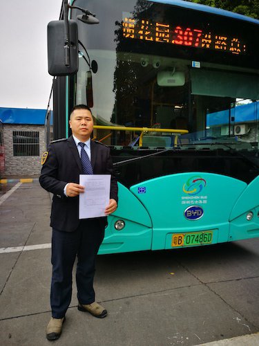 ▲胡師傅拿著深圳市交委轉(zhuǎn)來(lái)的表?yè)P(yáng)單。