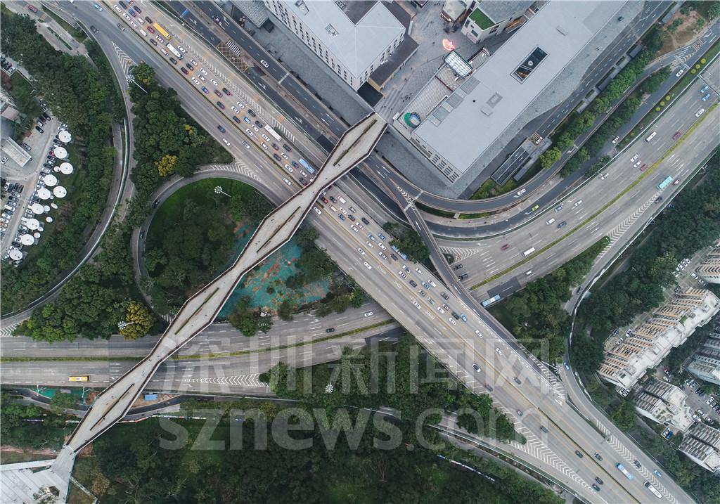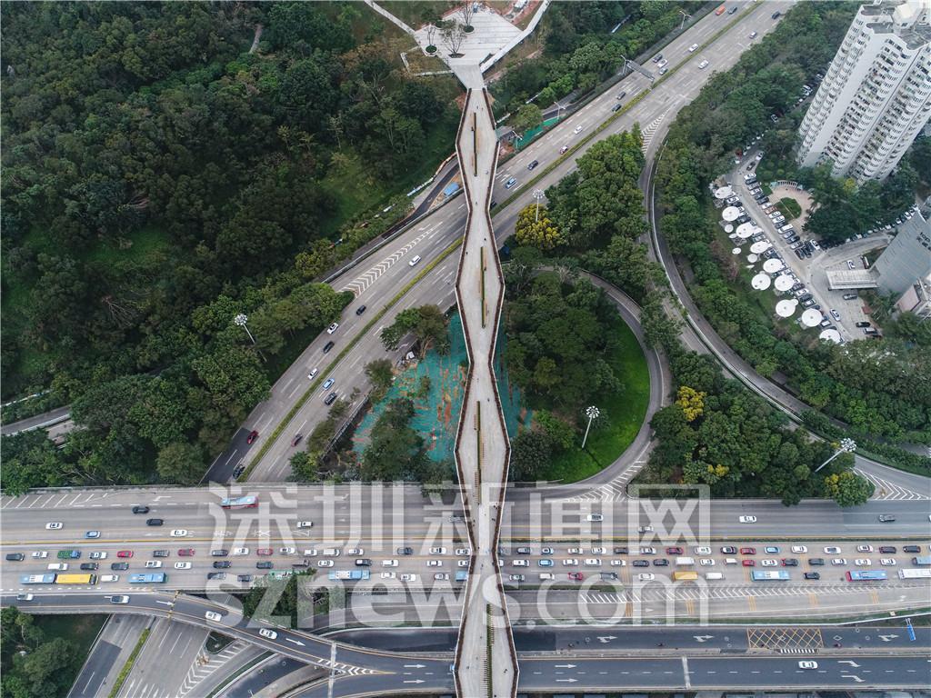 據(jù)悉,蓮花山廊橋由深業(yè)上城規(guī)劃打造,本次開通的300米廊橋路段屬于福田區(qū)的重點(diǎn)景觀提升工程——“蓮花山筆架山空中走廊”。該走廊串聯(lián)兩座綠色公園,跨越彩田路、蓮花路、皇崗路等三條市政道路。全長(zhǎng)1.2公里,市民從蓮花山公園步行至筆架山公園只要10分鐘。