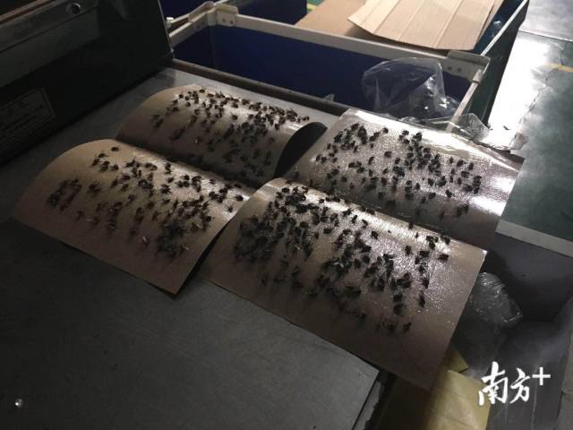 除臭氣難聞外,筆者看到靠近垃圾站一邊的廠房玻璃上爬著好幾只蒼蠅,同時(shí),工廠員工還展示了兩張粘蠅紙。