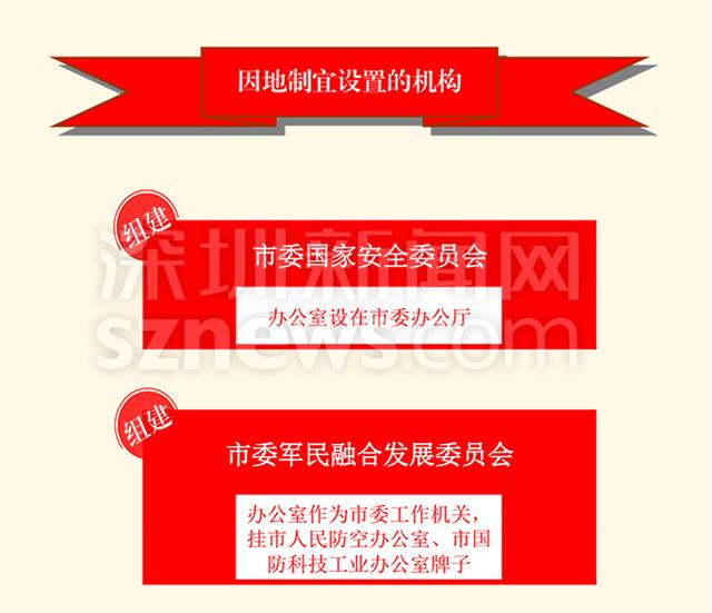 四是突出聚焦服務(wù)國家重大戰(zhàn)略和構(gòu)建推動高質(zhì)量發(fā)展的體制機制。這次改革,涉及黨中央集中統(tǒng)一領(lǐng)導和國家法制統(tǒng)一、政令統(tǒng)一、市場統(tǒng)一的機構(gòu)職能,與中央和省保持基本對應(yīng),同時,根據(jù)深圳的城市發(fā)展特點和功能定位,聚焦推進粵港澳大灣區(qū)建設(shè)、精準扶貧等國家重大發(fā)展戰(zhàn)略,聚焦軍民融合發(fā)展、中小企業(yè)服務(wù)等重點領(lǐng)域,打基礎(chǔ)、謀長遠,因地制宜優(yōu)化調(diào)整機構(gòu)設(shè)置和職能配置,既充分體現(xiàn)中央戰(zhàn)略意圖,又反映地方需求和特色,不斷增強經(jīng)濟特區(qū)體制機制吸引力和競爭力,為城市可持續(xù)發(fā)展提供堅實保障。如:組建市委推進粵港澳大灣區(qū)建設(shè)領(lǐng)導小組辦公室,搶抓粵港澳大灣區(qū)建設(shè)重大機遇,充分發(fā)揮我市在粵港澳大灣區(qū)建設(shè)中的核心引擎作用;組建市扶貧協(xié)作和合作交流辦公室,統(tǒng)籌對口幫扶、對口支援、扶貧協(xié)作等領(lǐng)域資源力量,更加深入貫徹中央關(guān)于堅決打贏脫貧攻堅戰(zhàn)的要求,更好體現(xiàn)深圳感恩改革開放、回報全國人民的歷史擔當;重新組建市科技創(chuàng)新委員會,加強園區(qū)發(fā)展與科技產(chǎn)業(yè)融合,繼續(xù)發(fā)揮深圳高新技術(shù)產(chǎn)業(yè)的示范帶動作用;組建市委軍民融合發(fā)展委員會辦公室,貫徹落實中央有關(guān)軍民融合發(fā)展戰(zhàn)略和決策部署,大力促進軍民融合產(chǎn)業(yè)發(fā)展,培育新的經(jīng)濟增長點;組建市中小企業(yè)服務(wù)局,積極營造有利于中小企業(yè)發(fā)展的環(huán)境,推動中小企業(yè)提升發(fā)展質(zhì)量,為中小企業(yè)辦大事創(chuàng)造有利條件;調(diào)整市人才工作局設(shè)置,打造具有國際競爭力的人才高地,充分激發(fā)人才創(chuàng)新創(chuàng)造活力,使各方面人才各得其所、盡展其長;組建市城市更新和土地整備局,積極破解土地資源瓶頸,充分挖掘存量用地潛力,為產(chǎn)業(yè)發(fā)展、城市發(fā)展拓展優(yōu)化空間。
