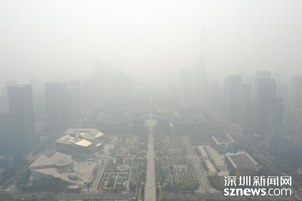 1月12日,霧霾襲深,深圳天氣君發(fā)布預警,今天最好不要在室外玩耍。記者中午用無人機航拍福田CBD區(qū)域,鏡頭下,市民中心和平安金融大廈兩個地標幾乎無法辨別,新洲路上能見度很低,一切都仿佛浸在化不開的濃湯里。深圳天氣君在微博提醒:弱北風影響下,不利于污染物擴散,我市中西部地區(qū)下午會持續(xù)十面“霾”伏,灰霾黃色預警信號生效中,各位盡量不要長時間戶外活動。