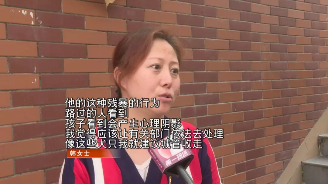 韓女士:我就走進(jìn)公交車站總站里面,就看到有幾個司機(jī)拿著棍子,我就知道他們應(yīng)該是在打狗。