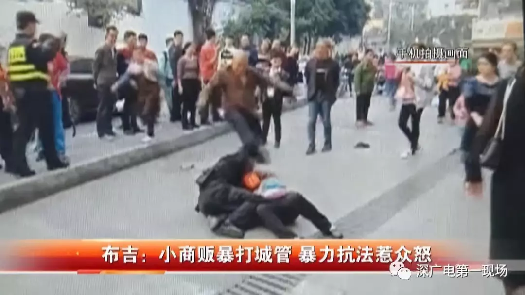 布吉一商販當街暴打城管,還全家人輪番上陣!周圍群眾也怒了