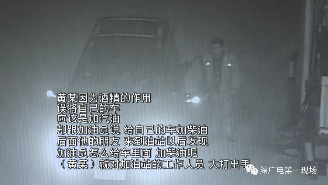 這一幕發(fā)生在寶安區(qū)沙井街道錦繡路的一個(gè)加油站。從監(jiān)控可以看到,凌晨4點(diǎn)左右,一輛桂A牌照的商務(wù)車駛?cè)爰佑驼炯佑?但這油才加到一半,司機(jī)黃某卻突然沖下車,與工作人員發(fā)生爭(zhēng)執(zhí)。