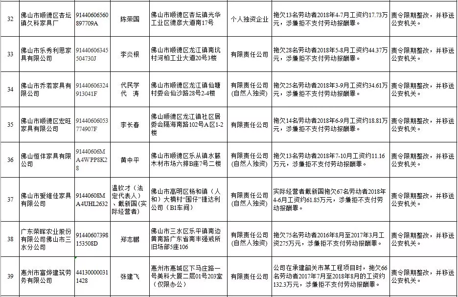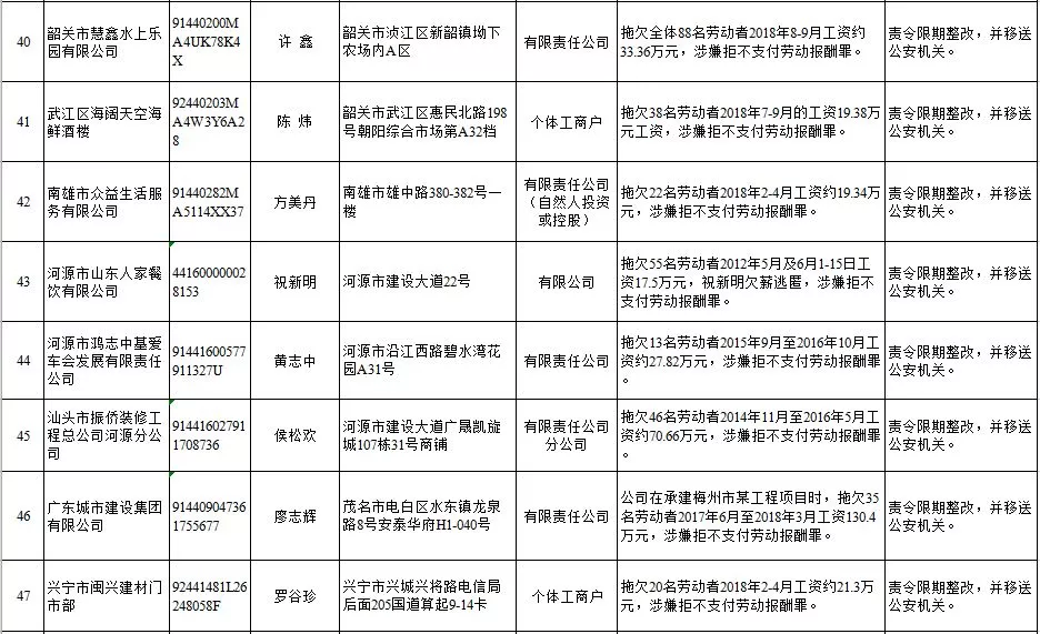 深圳新聞網(wǎng)2019年1月29日訊 (記者 劉婷)據(jù)廣東發(fā)布消息,省人社廳近日公布,2019年第一批用人單位重大勞動(dòng)保障違法行為名單。到底是哪些企業(yè)在惡意欠薪?這些“老賴(lài)”企業(yè)的營(yíng)業(yè)執(zhí)照、地址、法人等等超全信息都在這!