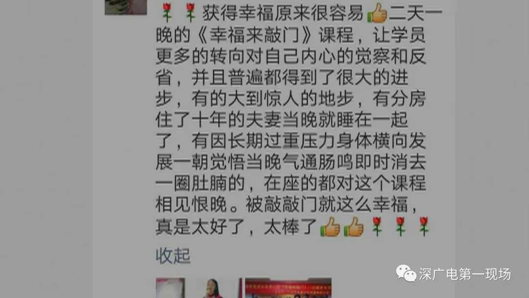 李先生說,價格雖然有點兒高,但如果能夠讓妻子變好,那也無話可說,然而妻子參加完后面課程回來以后,像是被洗腦了一樣。他偷偷看妻子的微信群,都在談論課程有神奇的效果,有人在朋友圈推銷說:聽了課程之后,分房住了十年的夫妻當晚就睡在一起。