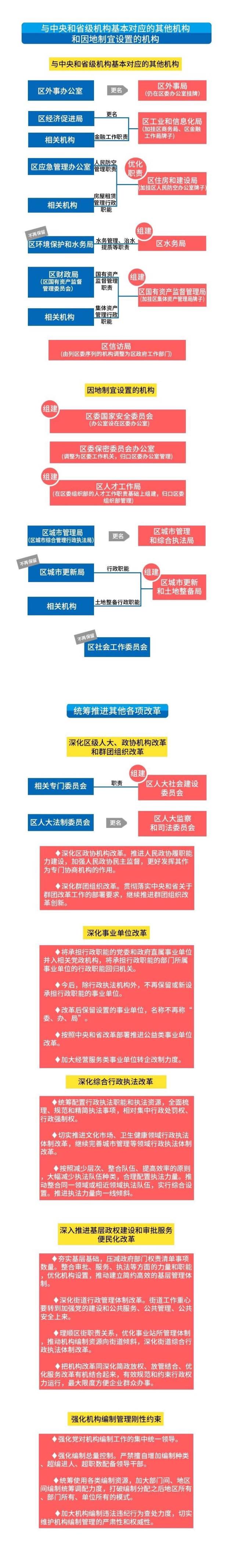 本次區(qū)級(jí)機(jī)構(gòu)改革,總的要求是中央及省明確的改革任務(wù)要堅(jiān)決落實(shí)到位,主要機(jī)構(gòu)設(shè)置同省、市保持基本對(duì)應(yīng)。同時(shí),又充分體現(xiàn)地方機(jī)構(gòu)綜合設(shè)置的特色,以推進(jìn)黨政機(jī)構(gòu)職能優(yōu)化協(xié)同高效為著力點(diǎn),改革機(jī)構(gòu)設(shè)置,優(yōu)化職能配置,深化轉(zhuǎn)職能、轉(zhuǎn)方式、轉(zhuǎn)作風(fēng),提高效率效能,積極構(gòu)建系統(tǒng)完備、科學(xué)規(guī)范、運(yùn)行高效的機(jī)構(gòu)職能體系,構(gòu)建簡(jiǎn)約高效的基層管理體制。