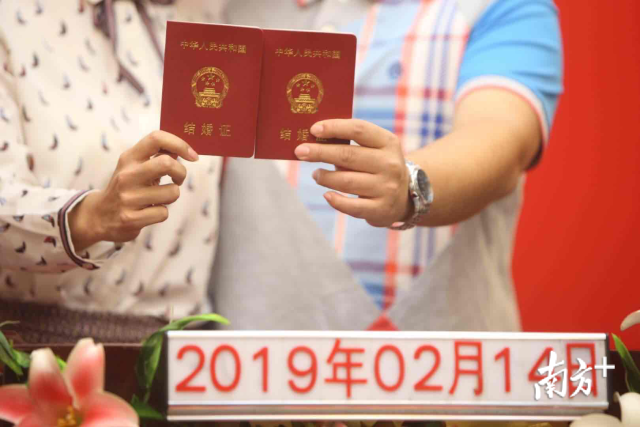 我們結(jié)婚啦!2月14日情人節(jié),一大早,深圳市羅湖區(qū)民政局婚姻登記處迎來(lái)許多對(duì)新人前來(lái)登記結(jié)婚。頒發(fā)證件、許下諾言、親密相吻……一對(duì)接一對(duì)的新人完成莊重的儀式,留下甜蜜蜜的合影,浪漫的氣息彌漫整個(gè)空間。南方日?qǐng)?bào)記者朱洪波攝影報(bào)道