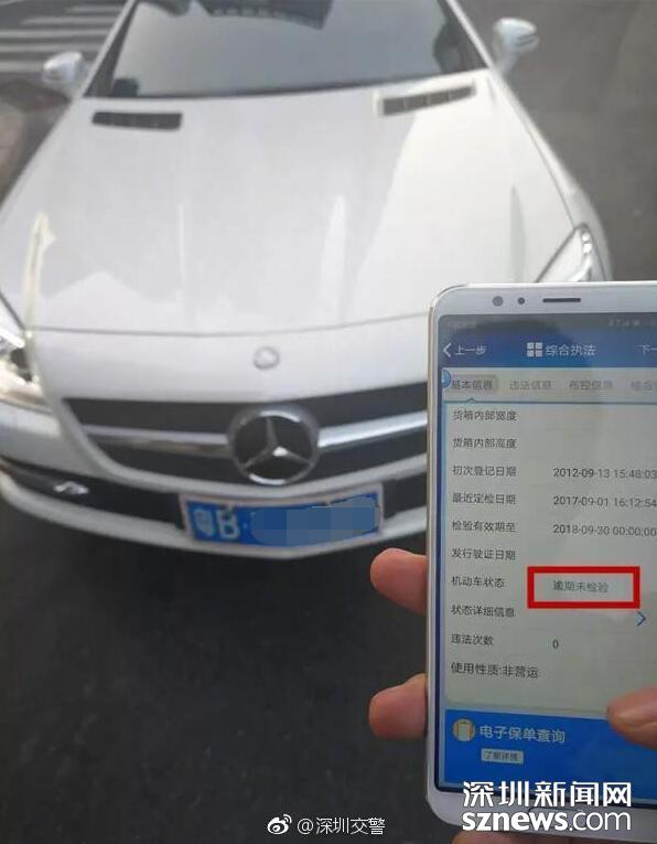 涉事車輛查處記錄顯示:逾期未檢驗(yàn)(圖片來(lái)自深圳交警微博截圖)