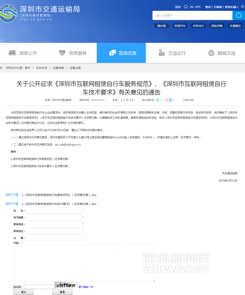深圳新聞網(wǎng)2019年2月21日訊 (記者 吳英敏)共享單車要如何擺放才規(guī)范?停放單車車輛連續(xù)長(zhǎng)度有沒(méi)有限制……近日,為規(guī)范單車運(yùn)營(yíng),深圳市交通局已組織編制了《深圳市互聯(lián)網(wǎng)租賃自行車服務(wù)規(guī)范》和《深圳市互聯(lián)網(wǎng)租賃自行車技術(shù)要求》,現(xiàn)通過(guò)其官網(wǎng)公開(kāi)征求社會(huì)各界意見(jiàn)。《規(guī)范》對(duì)單車運(yùn)營(yíng)企業(yè)備案、退出、車輛投放、人員配置、運(yùn)營(yíng)管理等方面均做出了具體規(guī)定。