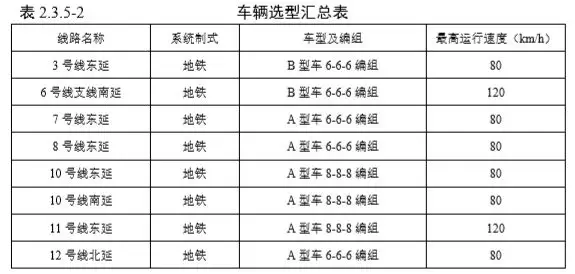 本次四期工程調整線路均為在建工程或已運營線路的延長線,全線按照統(tǒng)一標準進行列車選型,車輛選型及編組與既有線相同。