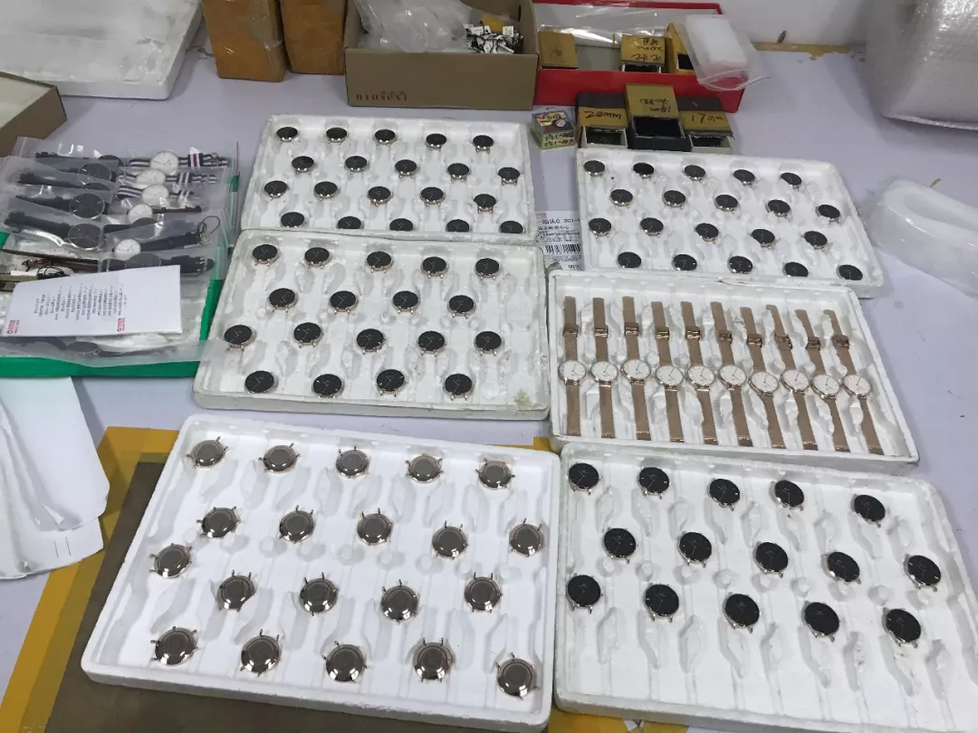 2018年6月21日,深圳市公安局經(jīng)偵支隊聯(lián)合市市場監(jiān)管部門開展打擊假冒DW品牌手表、FOREO等品牌潔面儀收網(wǎng)行動,共出動警力110人,查處窩點13個,刑拘犯罪嫌疑人12人?,F(xiàn)場查扣假冒DW品牌手表13500塊,表帶、表殼、后蓋等配件43000個以及包裝盒、標簽12000余個,現(xiàn)場查扣假冒產(chǎn)品價值1200萬元人民幣,總涉案金額3000余萬元人民幣。查扣假冒各品牌美容產(chǎn)品、半成品和商標標識11798件,查扣假冒產(chǎn)品價值人民幣500萬元。經(jīng)查,上述犯罪團伙在未經(jīng)注冊商標所有人許可的情況下,擅自使用注冊的商標圖案組裝、翻新假冒DW品牌手表、FOREO品牌潔面儀。經(jīng)商標權利人鑒定,現(xiàn)場查獲的手表和美容儀為假冒其注冊商標的產(chǎn)品。