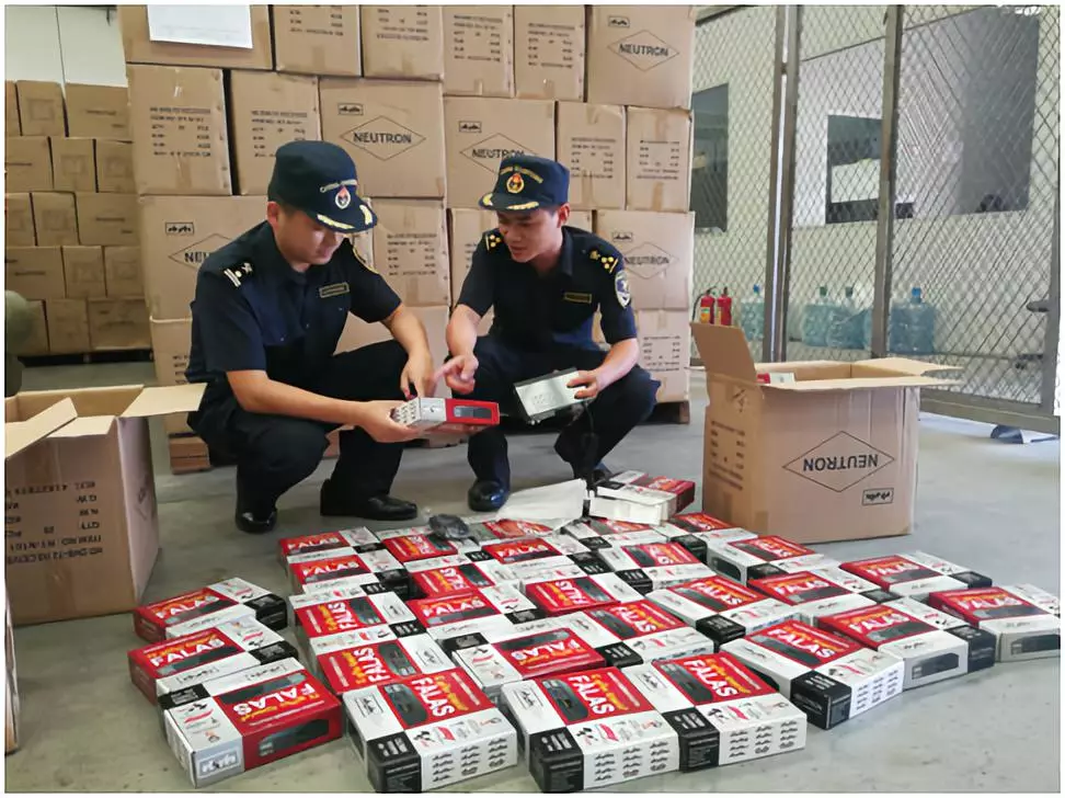 2018年10月17日,在深圳市煙草專賣局的統(tǒng)一指揮下,福田、羅湖等區(qū)局聯(lián)合公安部門展開抓捕行動,當場查獲假私卷煙330萬支,查扣涉案車輛4臺,案值逾320萬元,抓獲涉案嫌疑人5名。據(jù)了解,該案嫌疑人多次作案,嚴重擾亂卷煙市場秩序,區(qū)局為此成立專案組,不分晝夜蹲點守候。經(jīng)過2個多月的跟蹤調查,一舉破獲這宗運輸、倉儲、銷售假私煙案件。案發(fā)現(xiàn)場查獲兩把手槍、三包子彈及部分管制刀具等器械,目前該案由公安機關作進一步調查處理。該案是典型的涉黑涉煙案件。此案的告破,充分借助了中央“掃黑除惡”的東風,有力彰顯了煙草專賣執(zhí)法人員不懼危險的精神,切實維護了國家利益和消費者利益。