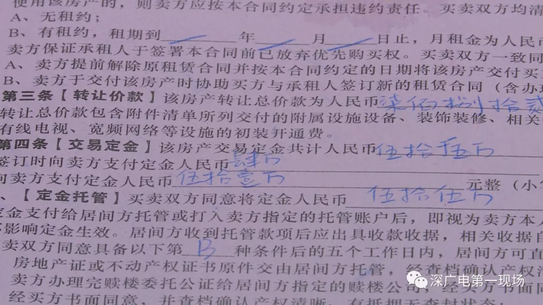 王先生:“中介把責任推的一干二凈,并且說定金一分錢都不會退,我們承認自己有責任,但是中介不能逃避他們的責任,我現(xiàn)在的訴求就是能退回一部分定金,并且讓中介承認自己的錯誤?!?/p>