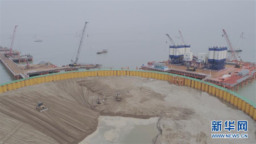 這是深中通道伶仃洋大橋東錨碇施工現(xiàn)場(3月13日無人機拍攝)。