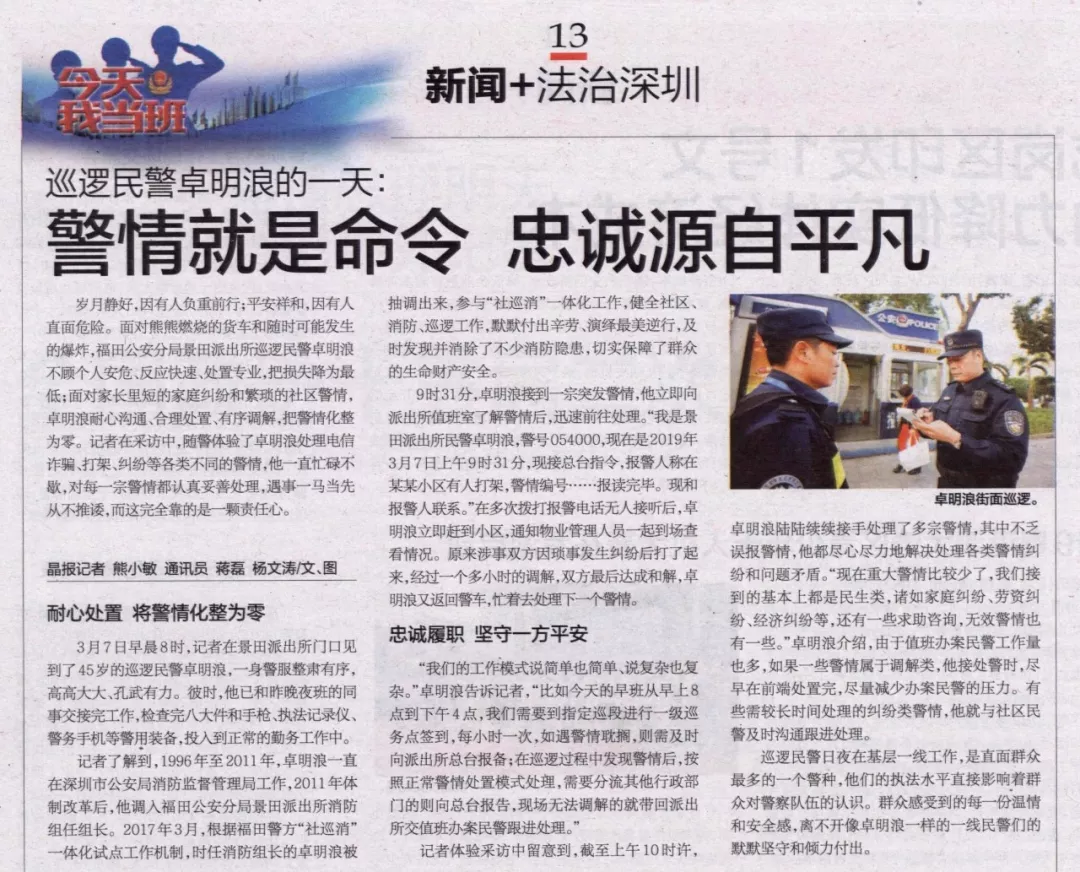 巡邏民警日夜在基層一線工作,是直面群眾最多的一個警種,他們的執(zhí)法水平直接影響著群眾對警察隊伍的認識。群眾感受到的每一份溫情和安全感,離不開像卓明浪一樣的一線民警們的默默堅守和傾力付出。